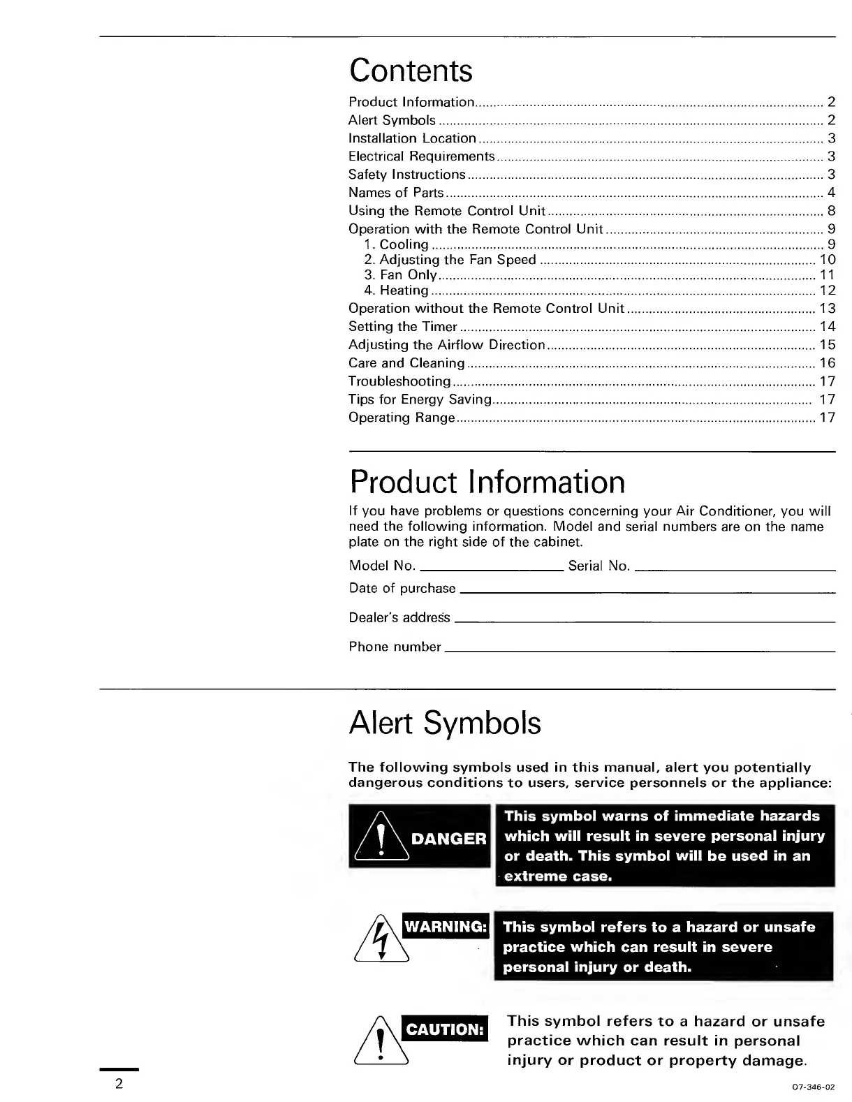 Sanyo KHS1822 - Product Information; Alert Symbols