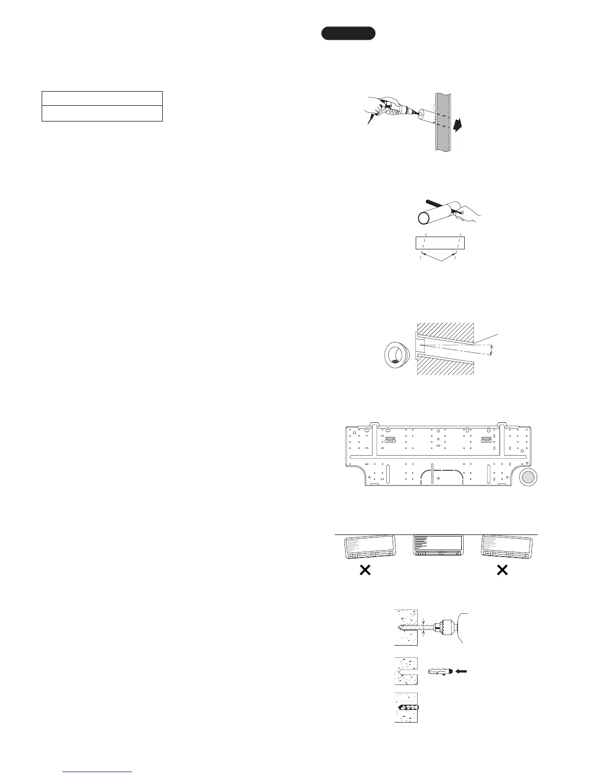 Make 3/16" (4.8 mm) dia. holes in the wall. Insert rawl