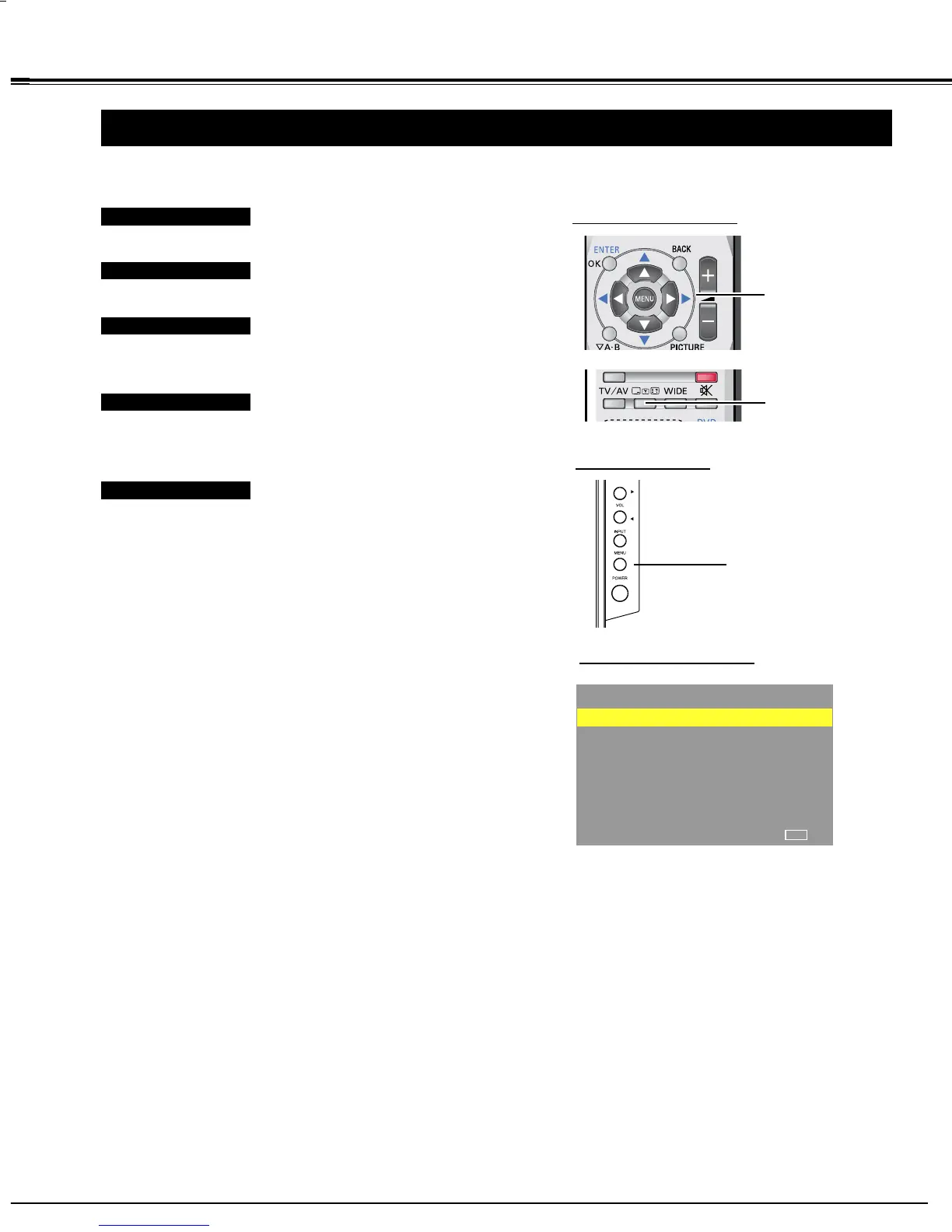 "OFF", "TV", "AV1", "AV2(DVD)", "HDMI" or "PC".