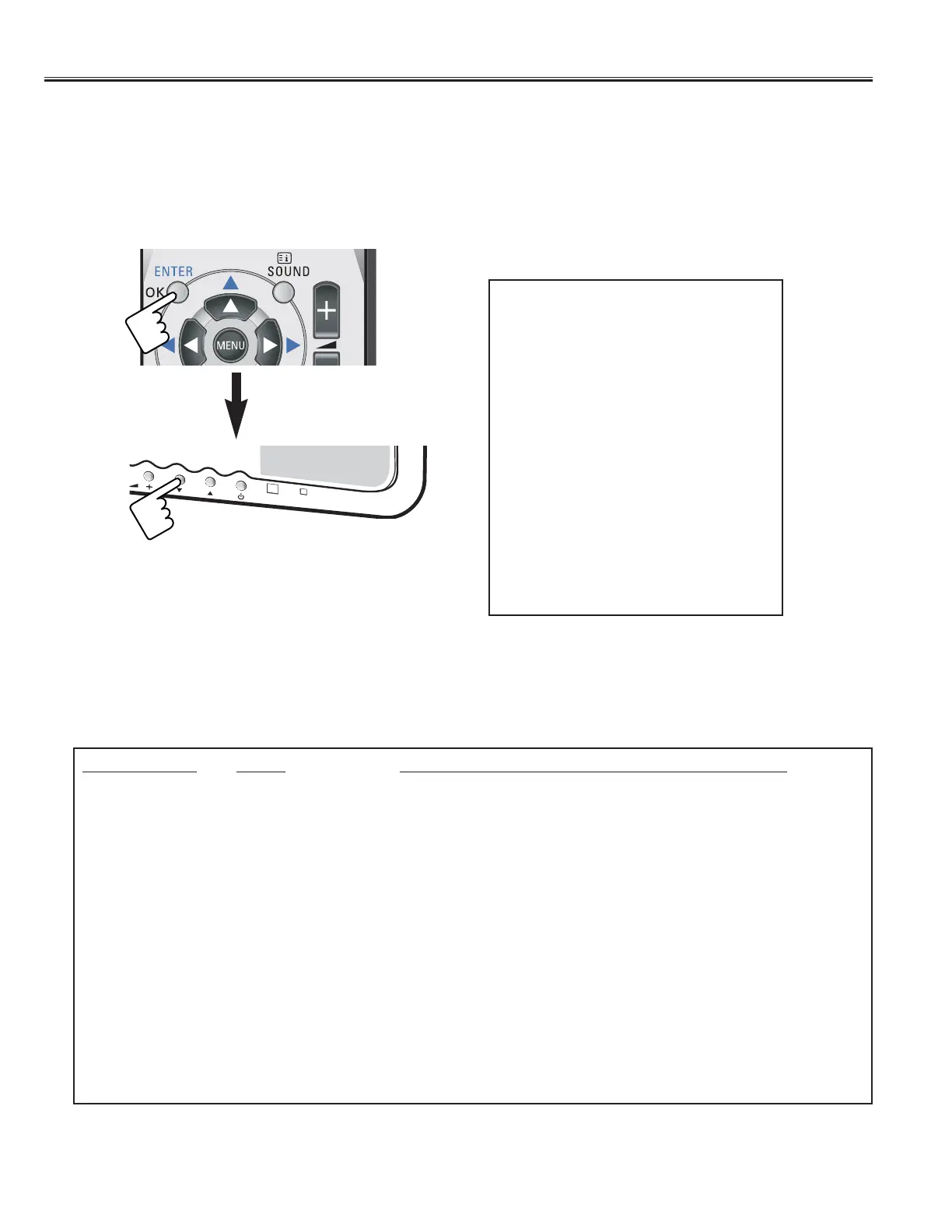Press and hold the OK button on the remote control and press the Programme Down (▼)button on the front