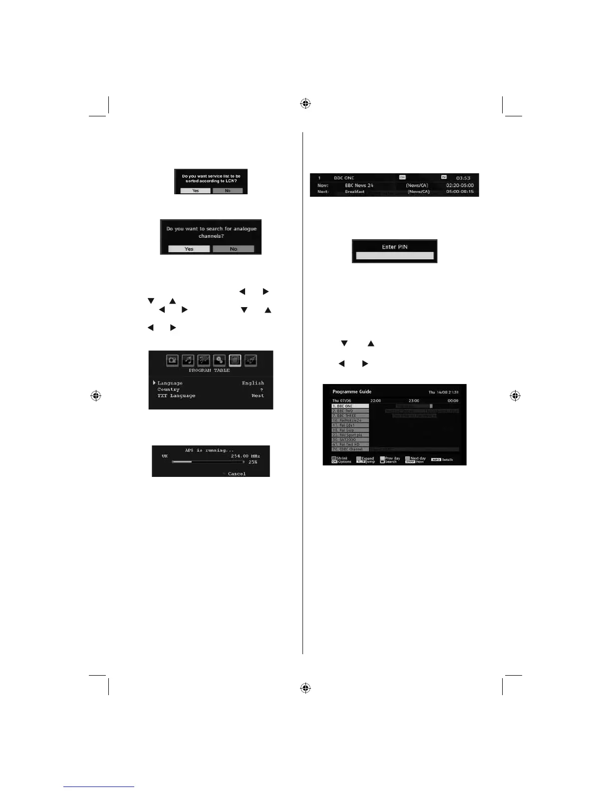 displayed to search for analogue channels.