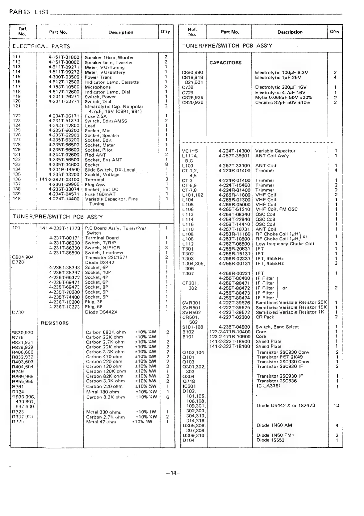 Sanyo M9998LU - Parts List
