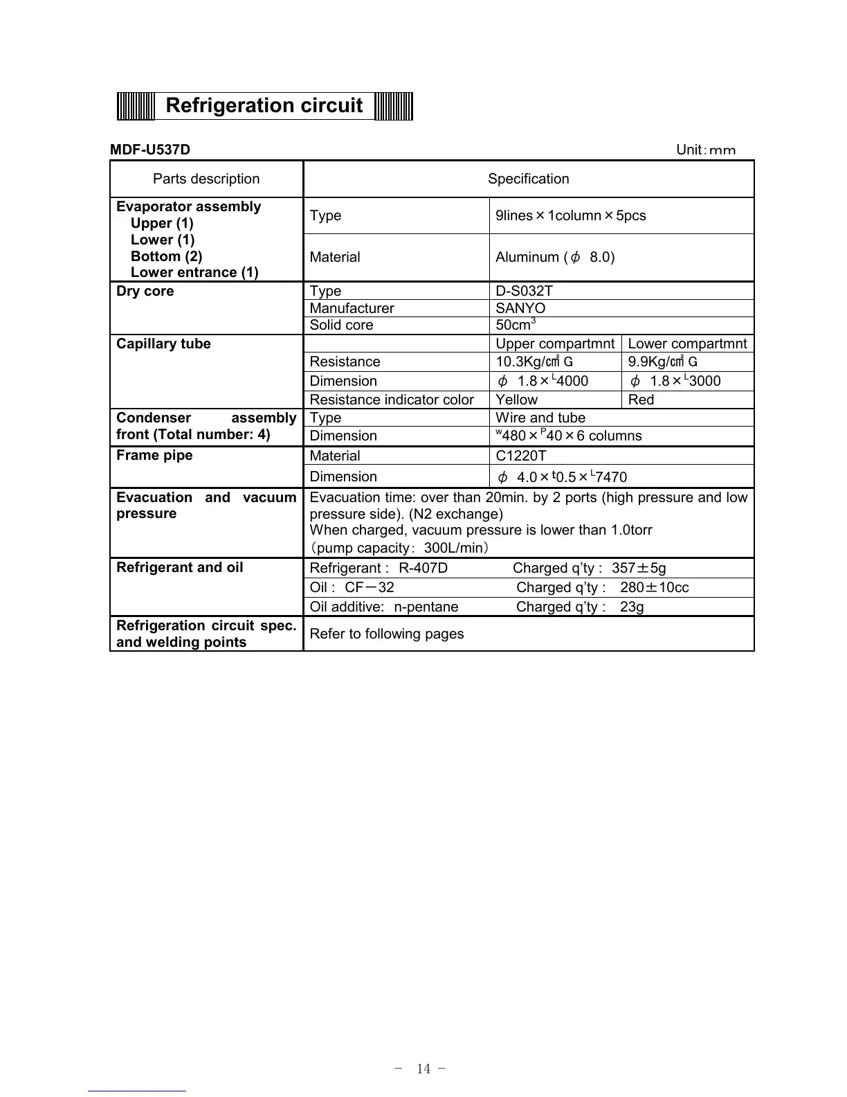 Refrigerant : R-407D Charged q’ty : 357±5g