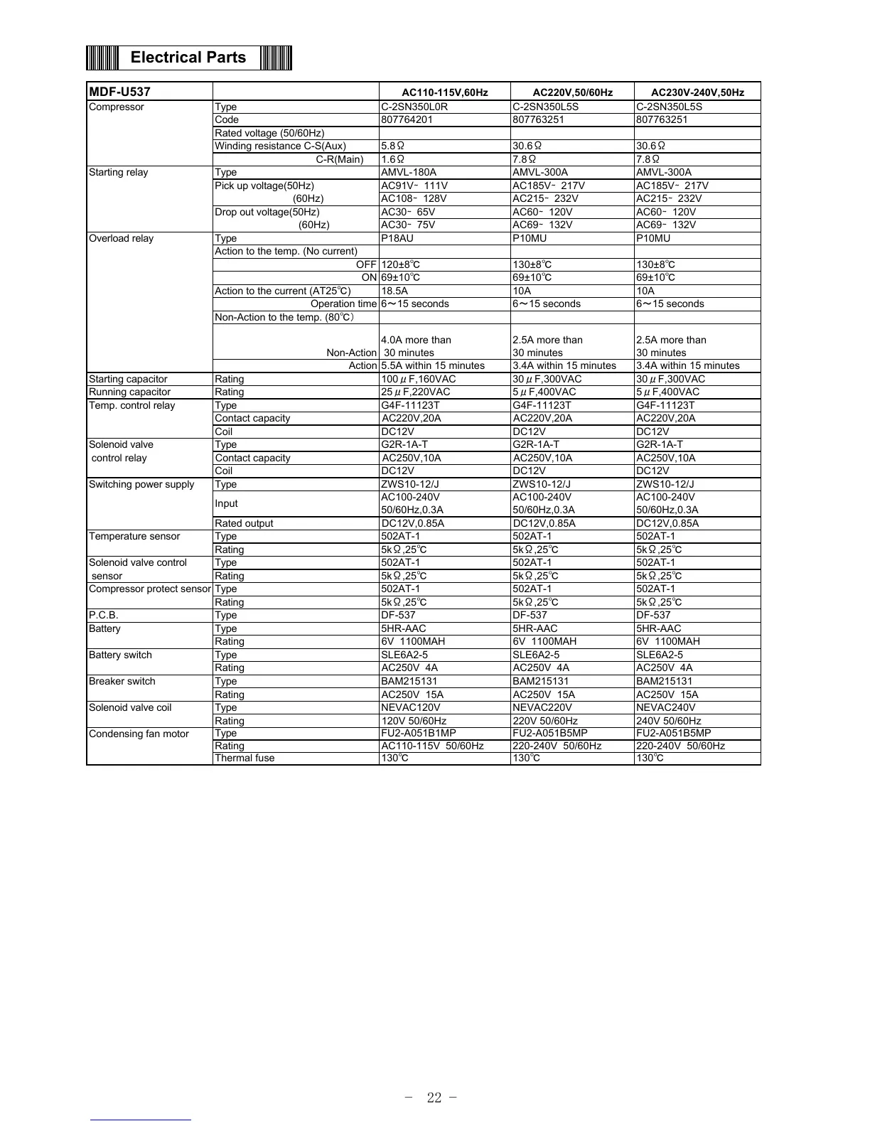 MDF-U537 AC110-115V,60Hz AC220V,50/60Hz AC230V-240V,50Hz