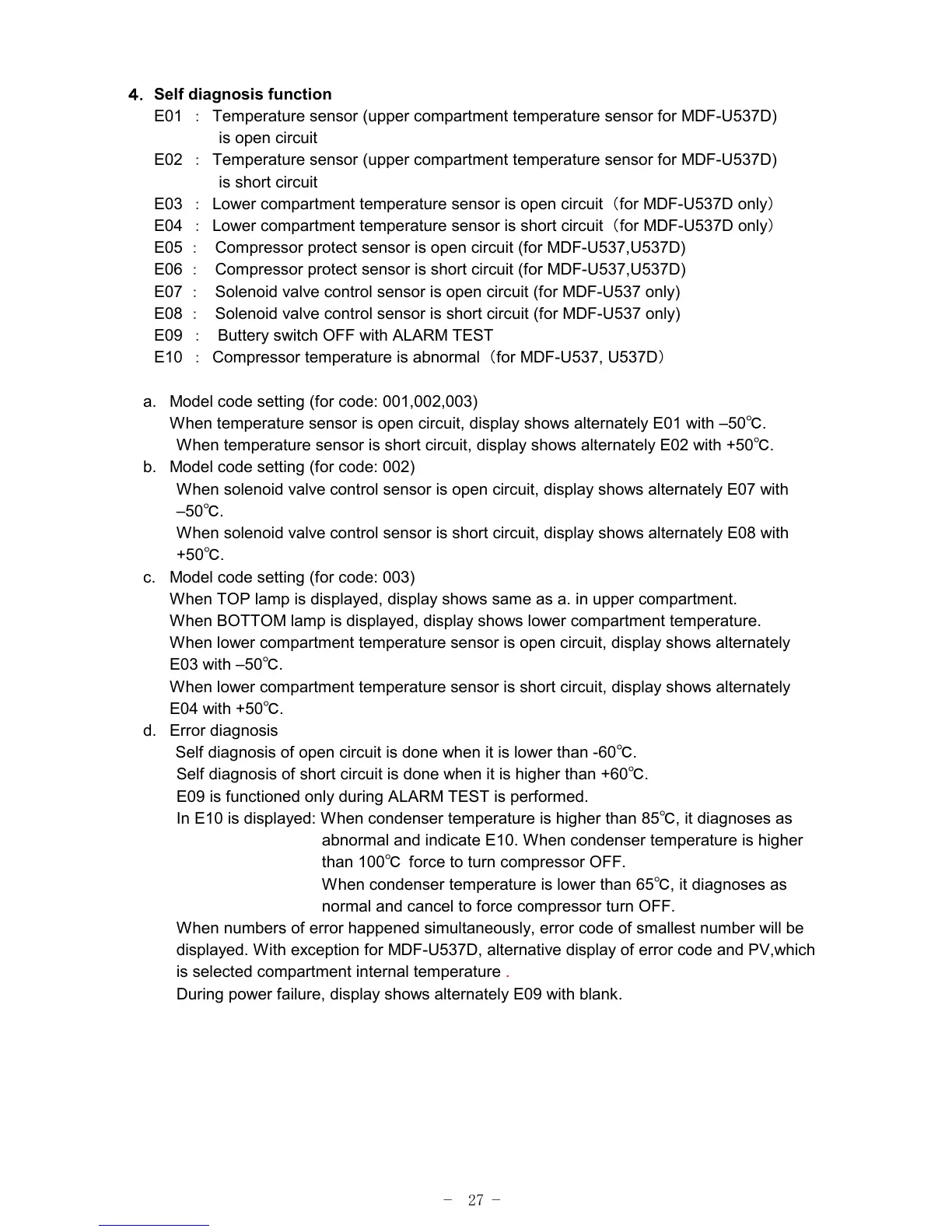 E03 : Lower compartment temperature sensor is open circuit (for MDF-U537D only)