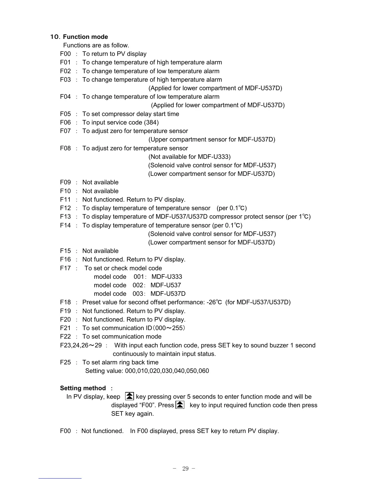 F18 : Preset value for second offset performance: -26℃ (for MDF-U537/U537D)