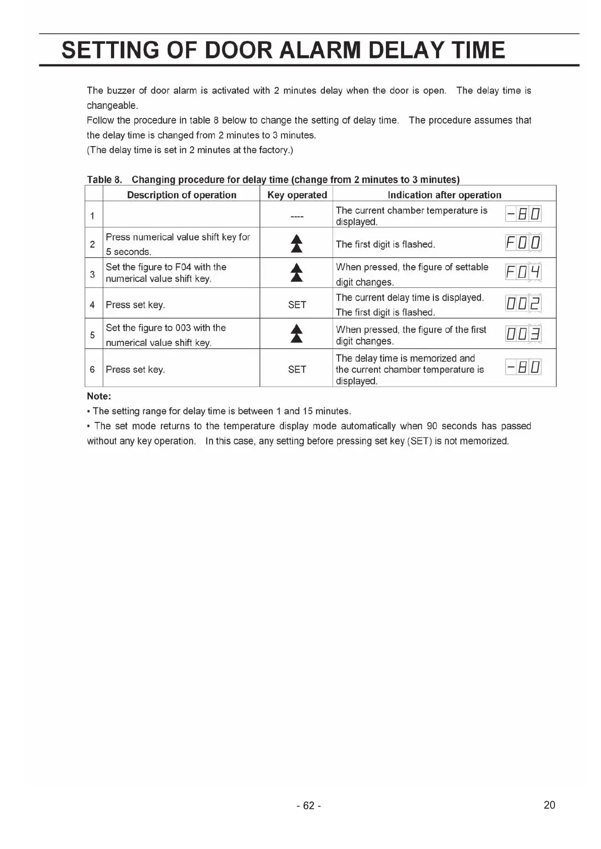 Sanyo MDF-U53VA - Setting of Door Alarm Delay Time