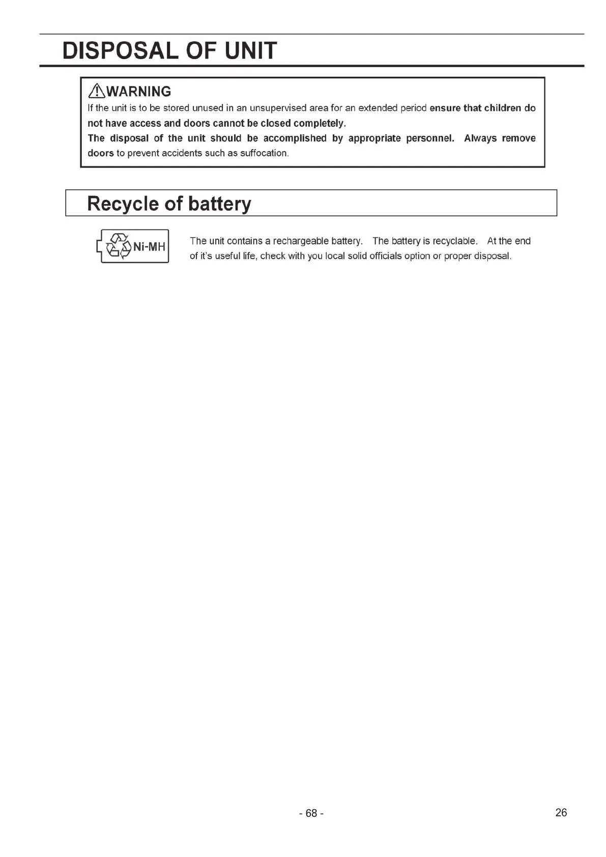 Sanyo MDF-U53VA - Disposal of Unit; Recycle of Battery
