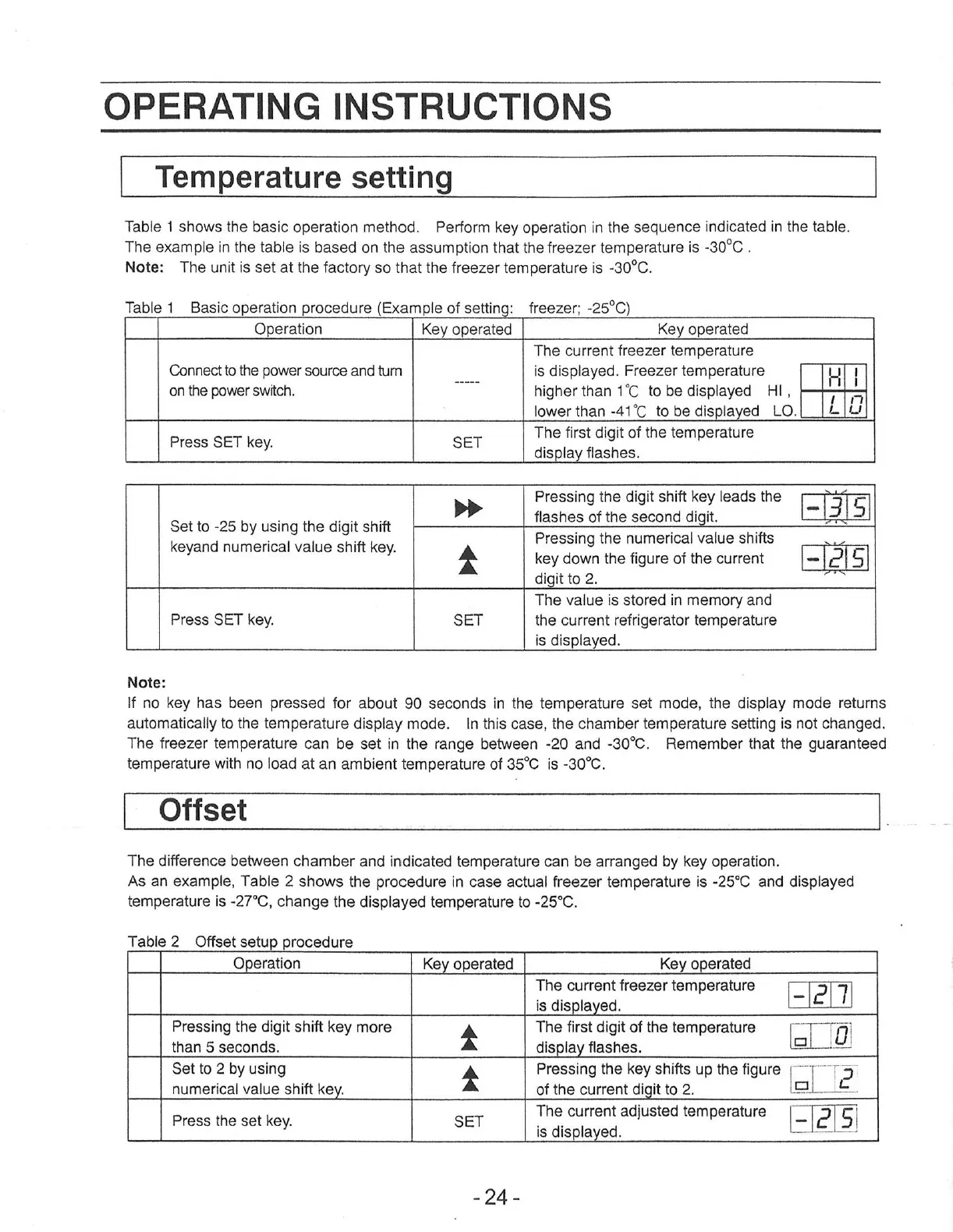 Sanyo MDF-U730 - Temperature Setting and Offset