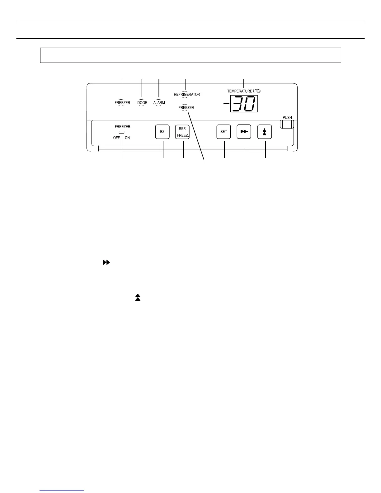 11. Freezer lamp (FREEZER): This lamp is lit during freezer operation.
