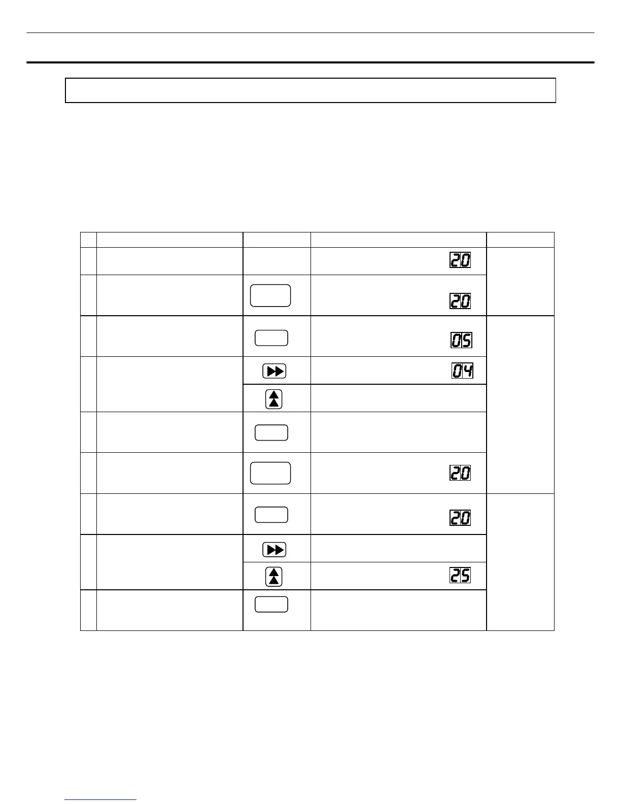 Table 1 shows the basic operation method. Perform key operation in the sequence indicated in the table.