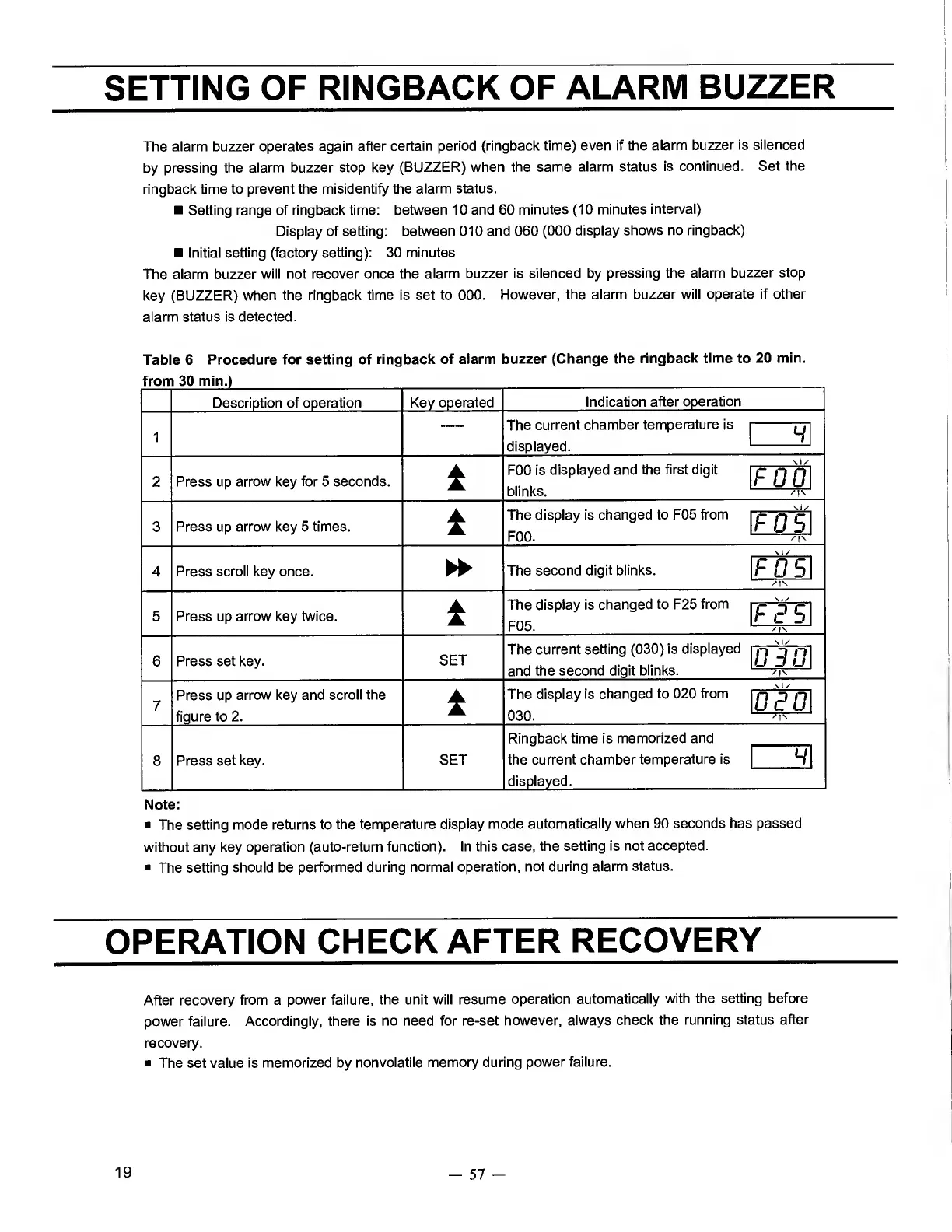 Sanyo MPR-721 - SETTING OF RINGBACK OF ALARM BUZZER; OPERATION CHECK AFTER RECOVERY
