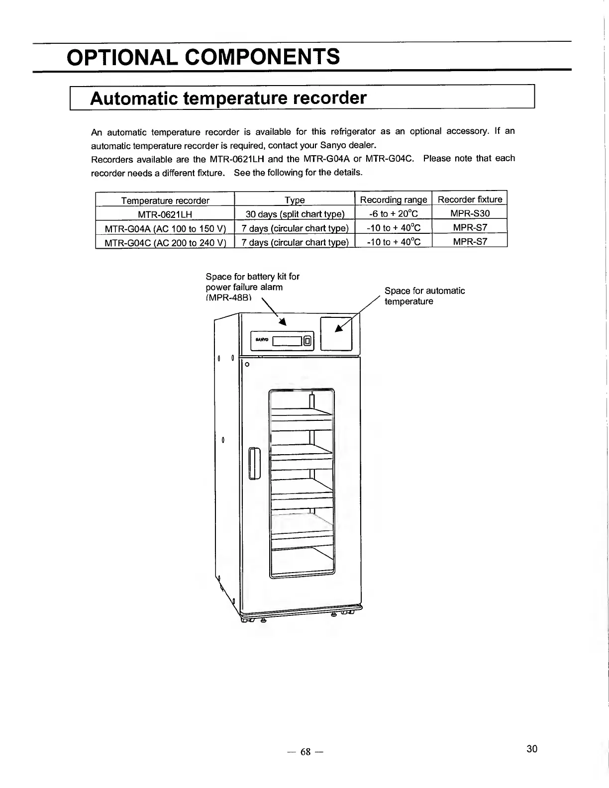 Sanyo MPR-721 - OPTIONAL COMPONENTS; Automatic temperature recorder