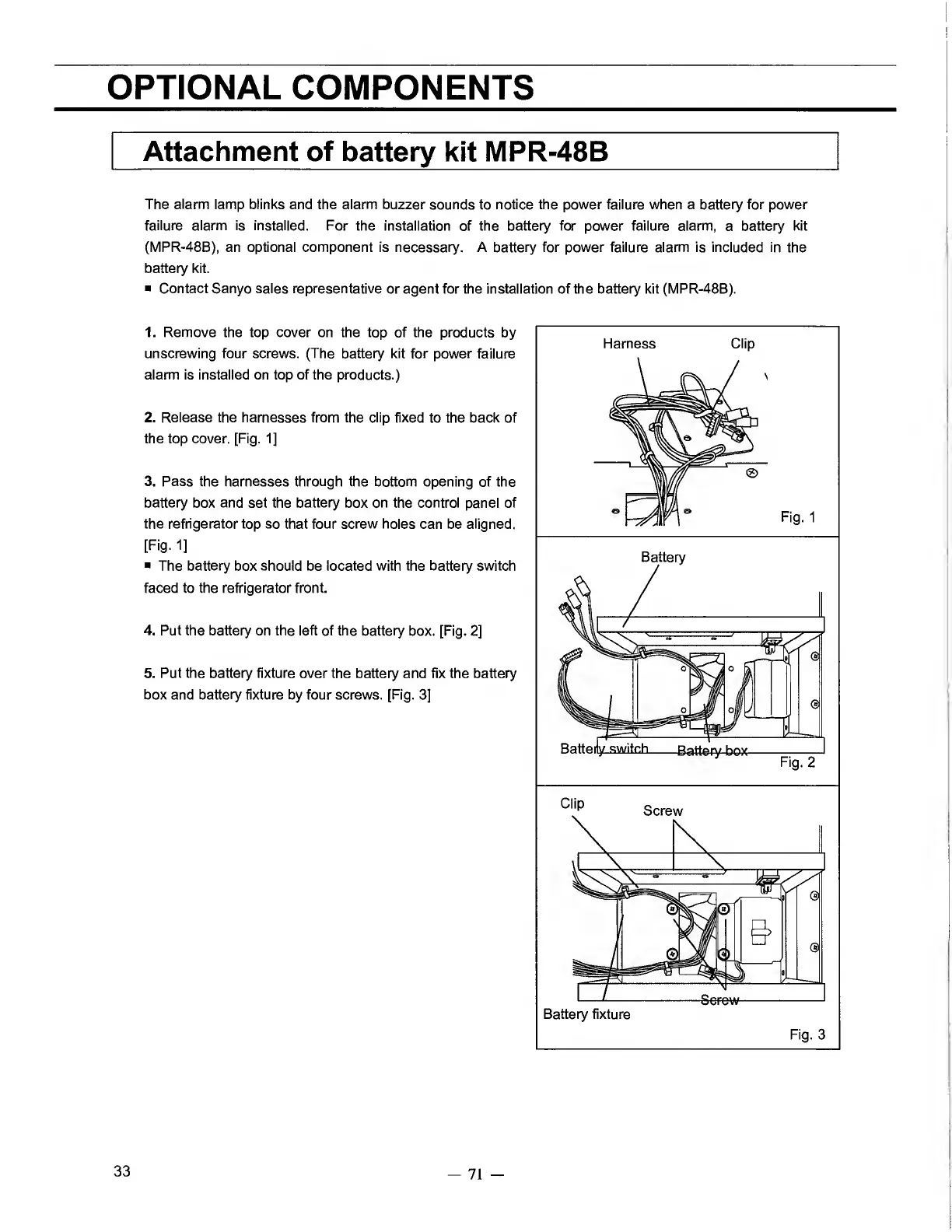 Sanyo MPR-721 - OPTIONAL COMPONENTS; Attachment of battery kit MPR-48 B