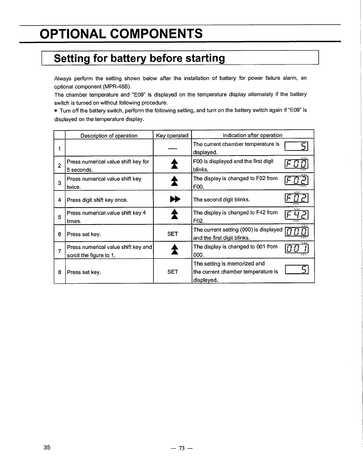 Sanyo MPR-721 - OPTIONAL COMPONENTS; Setting for battery before starting