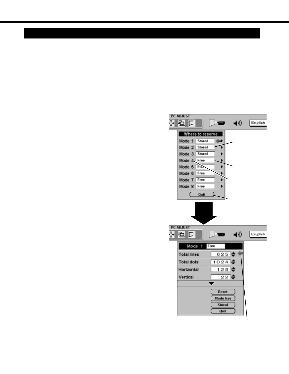 ADJUSTMENT Menu, select the Mode at the SYSTEM SELECT