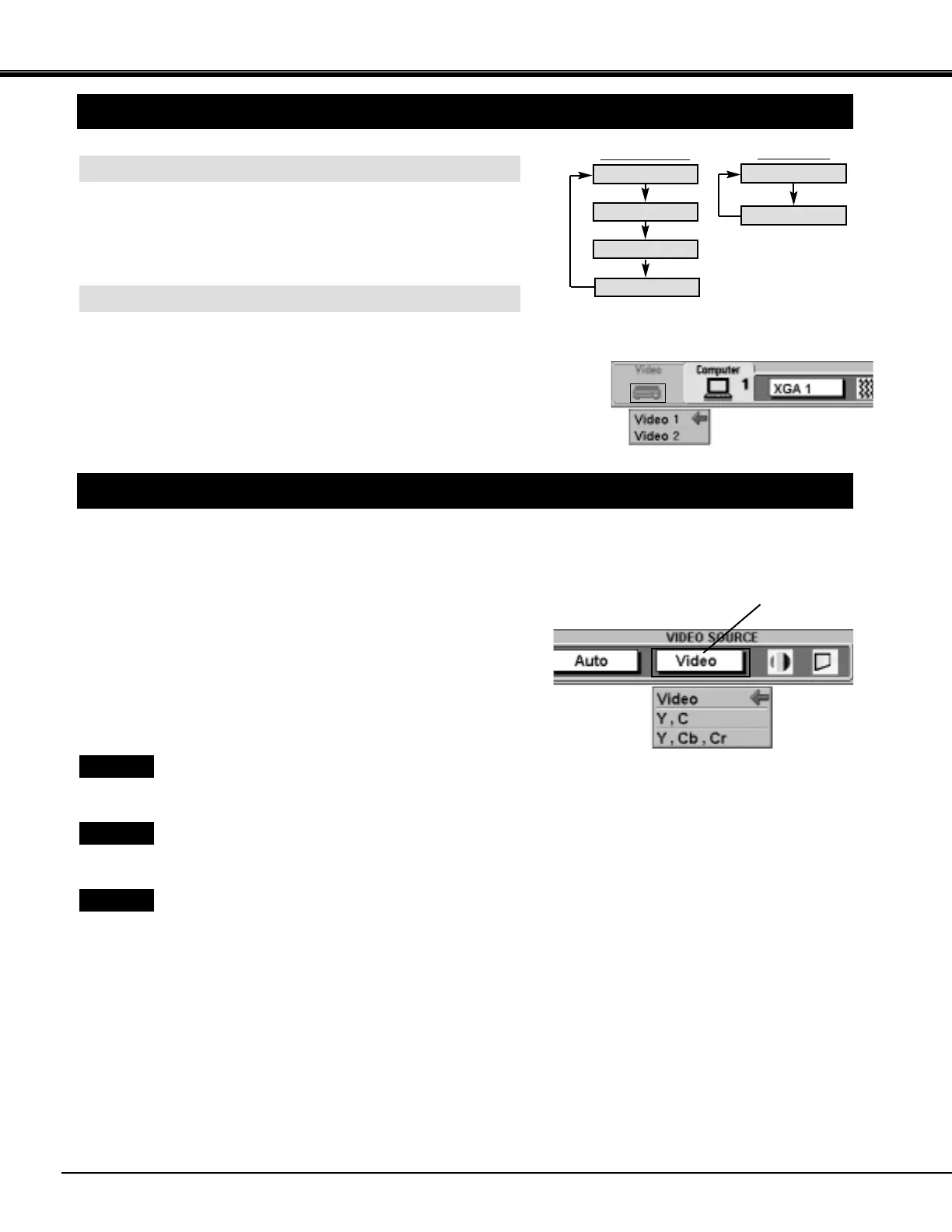 Y) jacks, select "Y, Cb, Cr" in VIDEO SOURCE Menu.