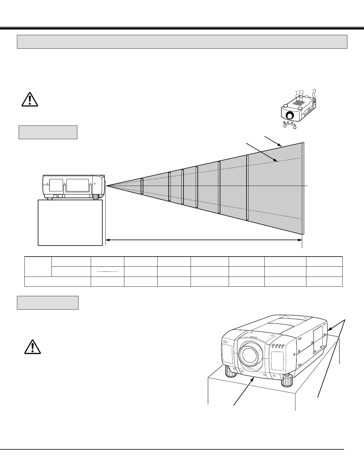 THIS PROJECTOR SHOULD BE SET IN THE WAY INDICATED. NEVER HANG
