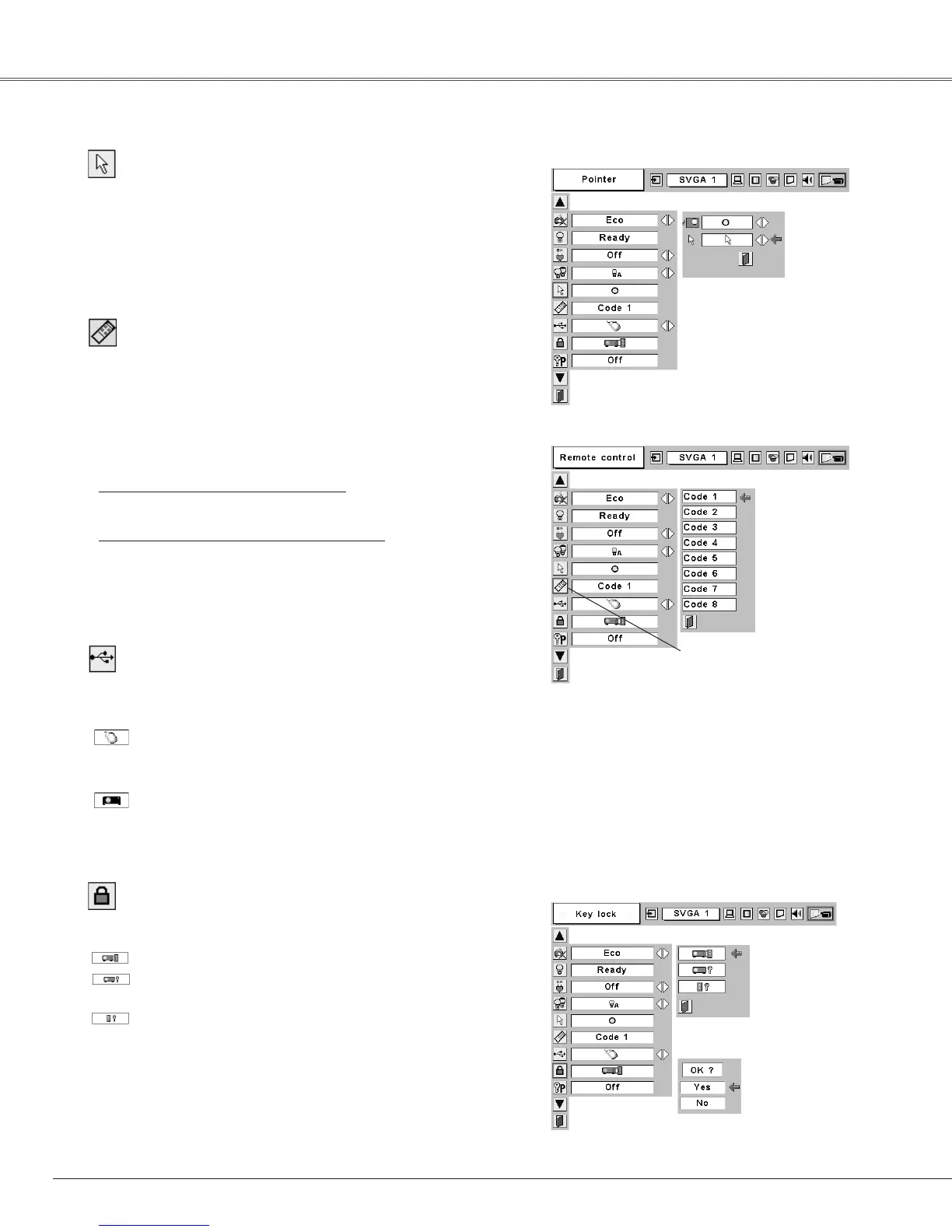 1-Code 8); the factory-set, initial code (Code 1) and the other