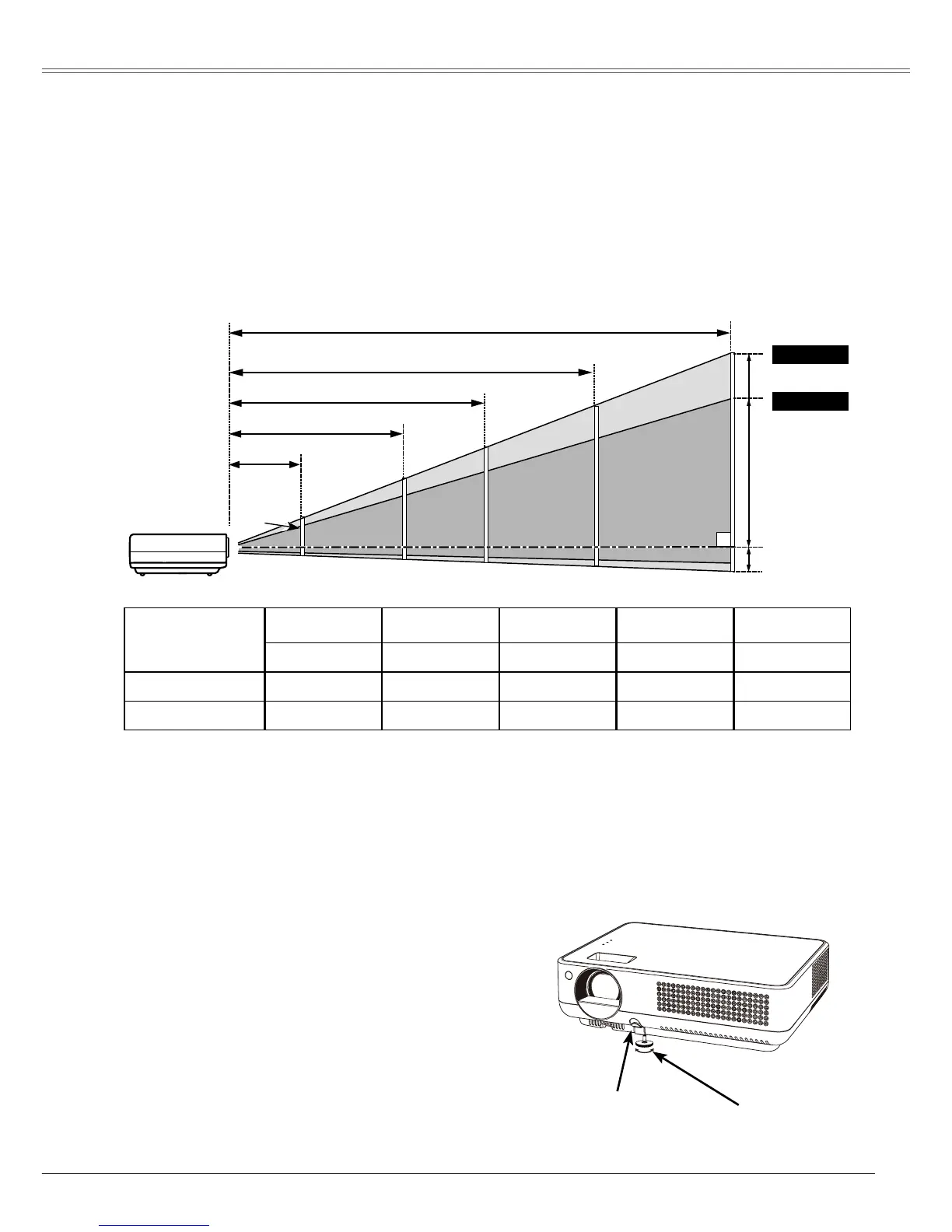 For projector positioning, see the figures below. The projector should be set horizontally to the flat