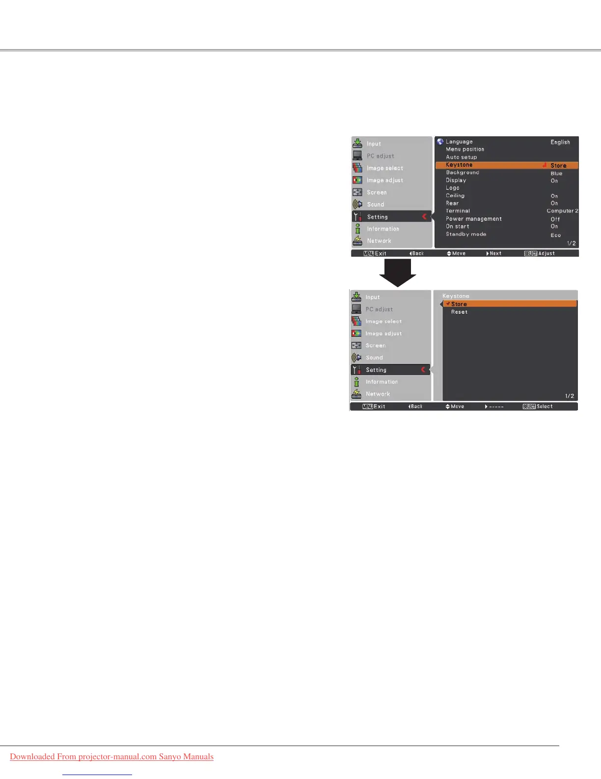 Keystoneappearsonthescreen.UsethePoint▲▼buttons
