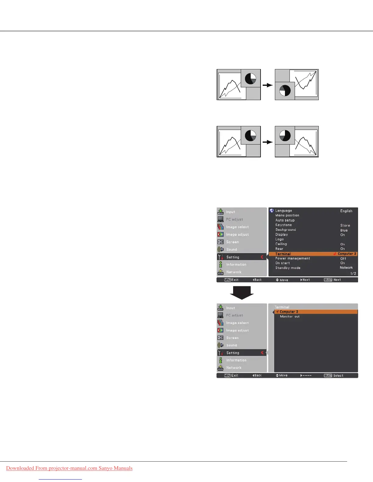 output. (See page 9) Select Computer 2 or Monitor Out