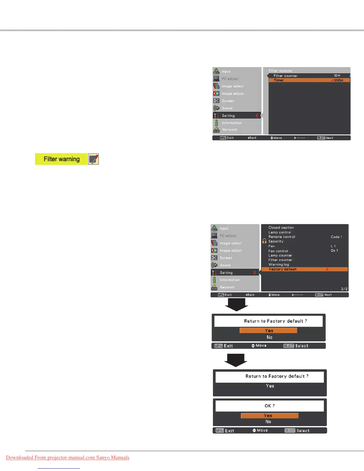 besuretoselectResetandsetthetimer.TheFilterwarning