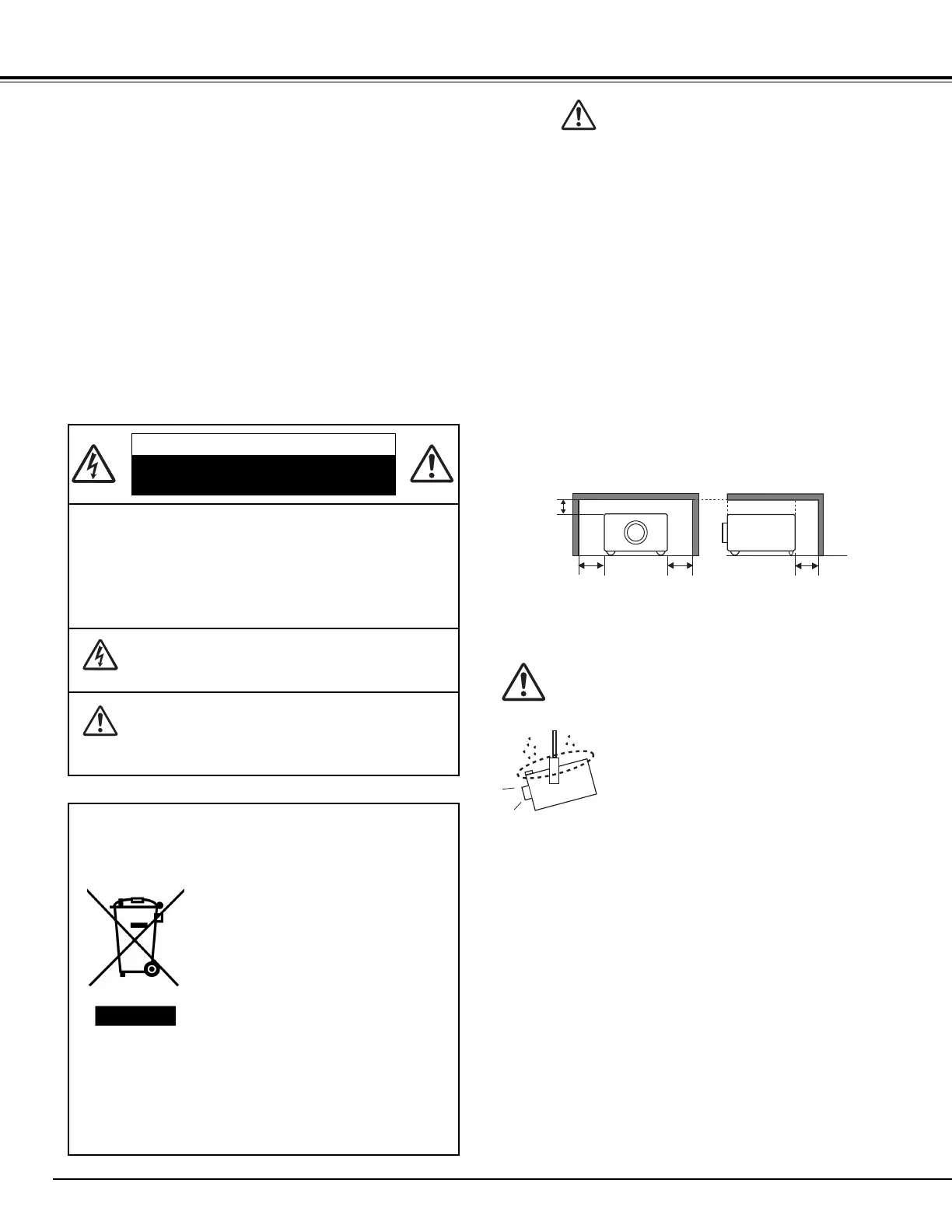 projector. Minimum clearances must be maintained. If the