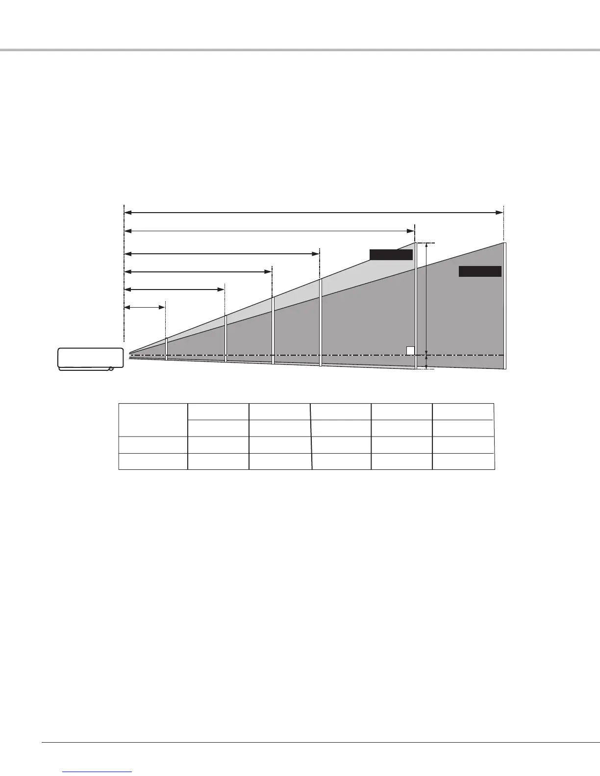 For projector positioning, see the figures below. The projector should be set perpendicularly to the plane of the