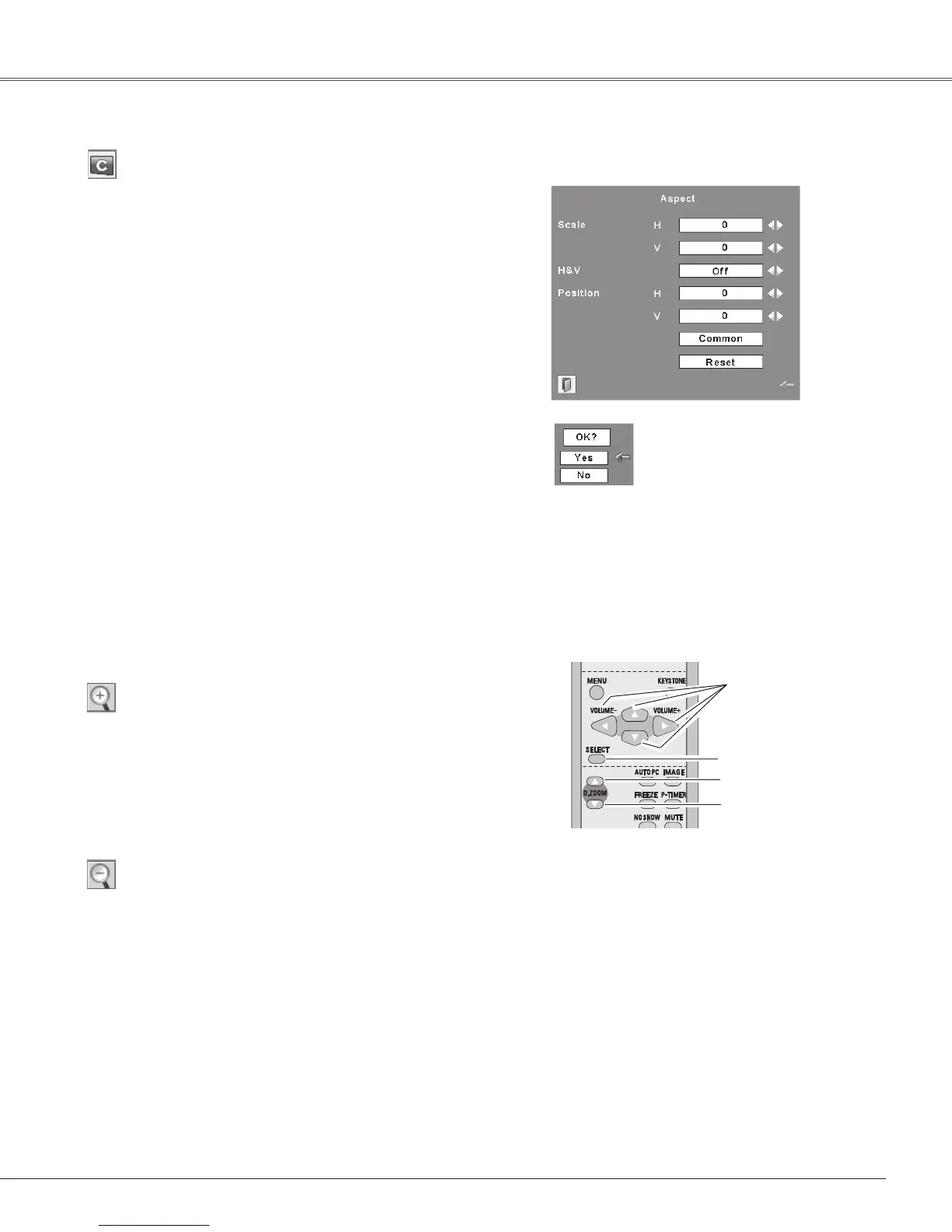 A projected image can be also expanded by pressing the