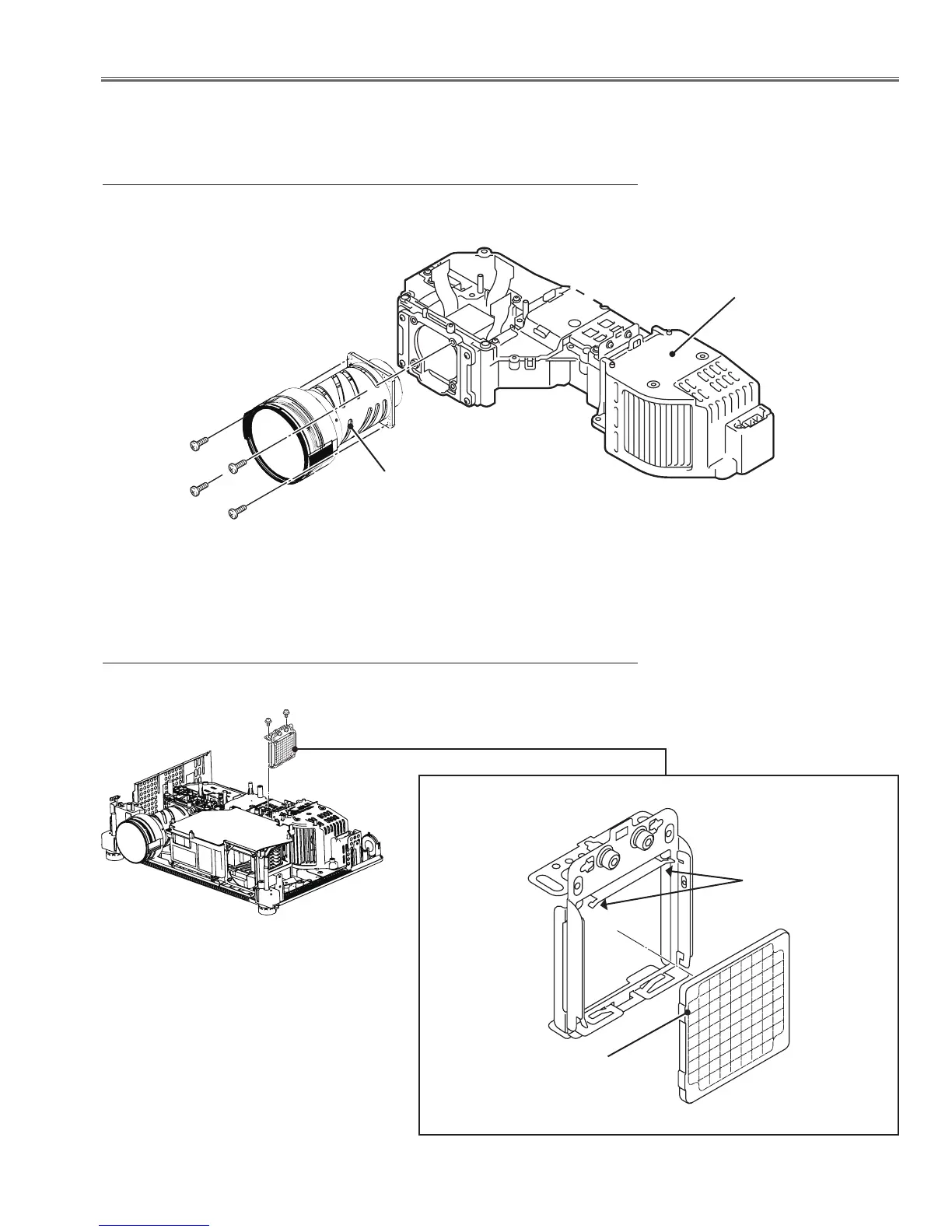 Note: The optical unit should be removed from the cabinet bottom before removing the projection lens.