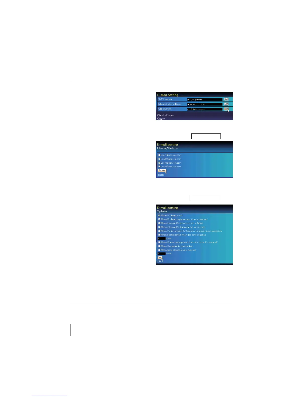 "When PJ lamp is off" signifies the lamp goes out without user operation. "When PJ is turned into