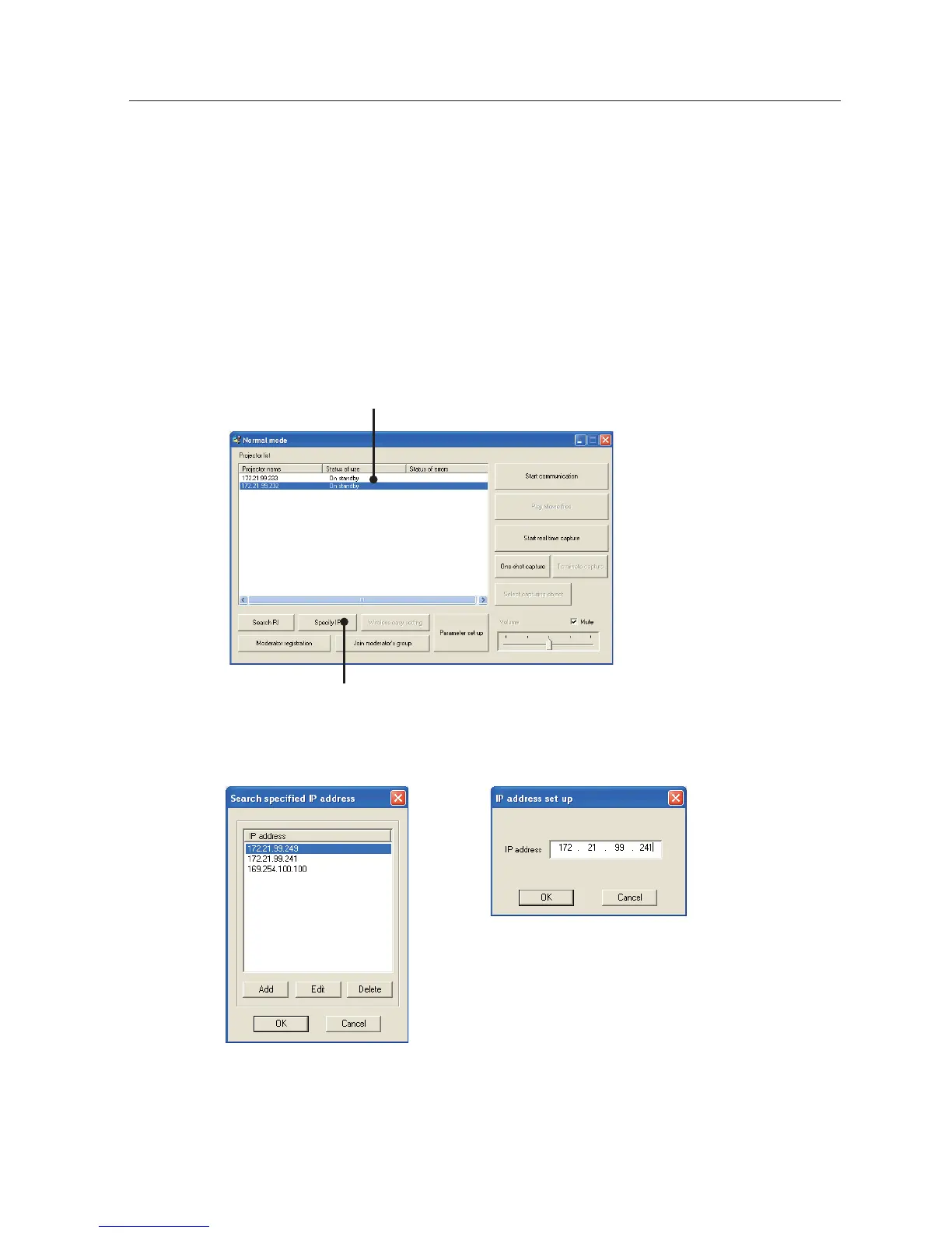 2. Click Add button, "IP address set up" window appears. Enter the IP address of the projector and Click