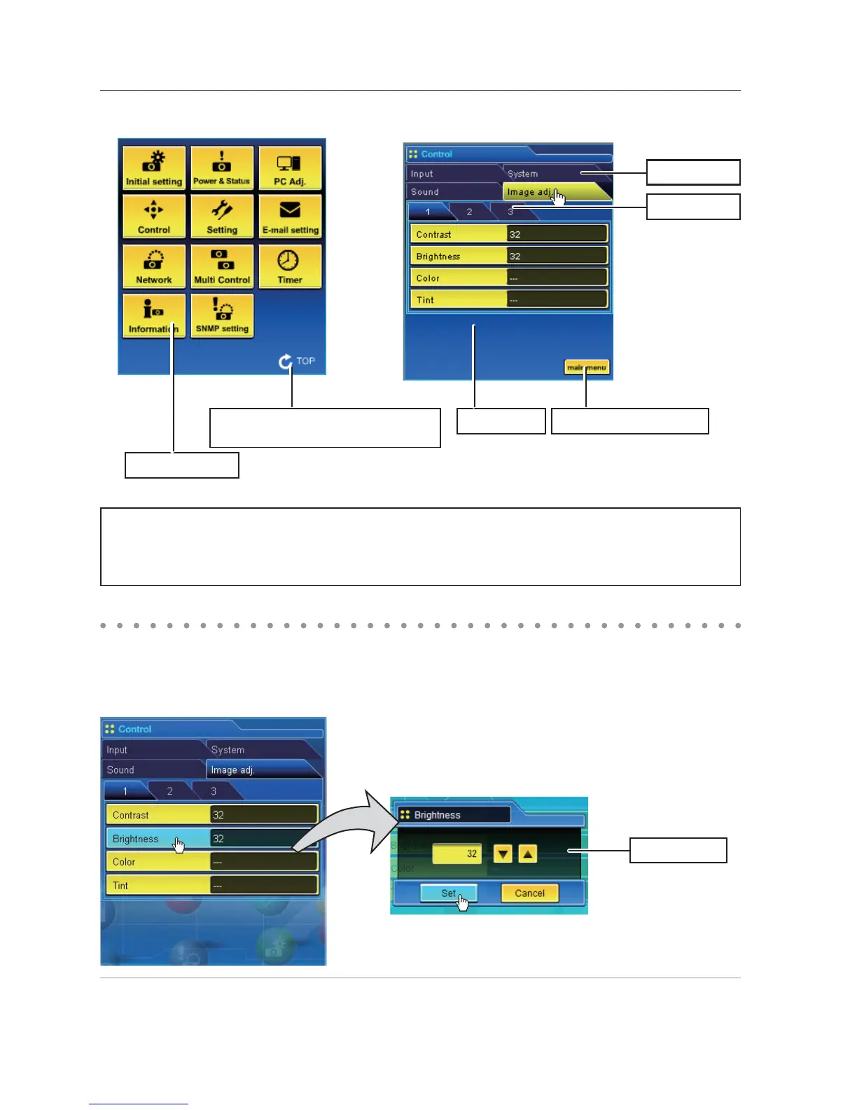 To control and set up the projector, use the setting menus on the web browser. The basic operation and