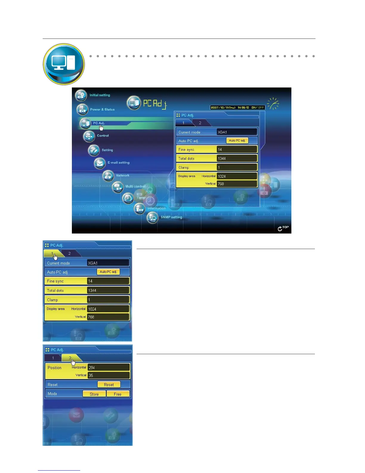 Click PC Adj. on the main menu. This function is to adjust the signal from the