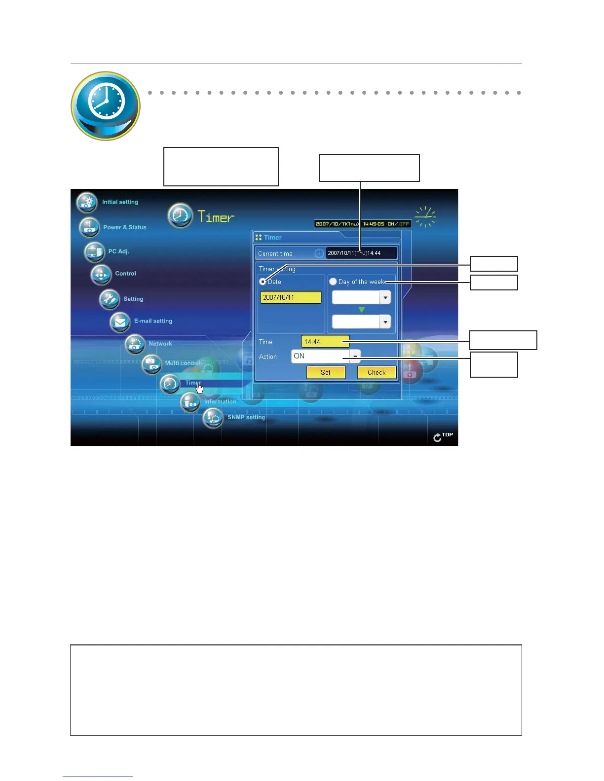 This page is to set the timer to turn the projector off or on at a programmed day/date