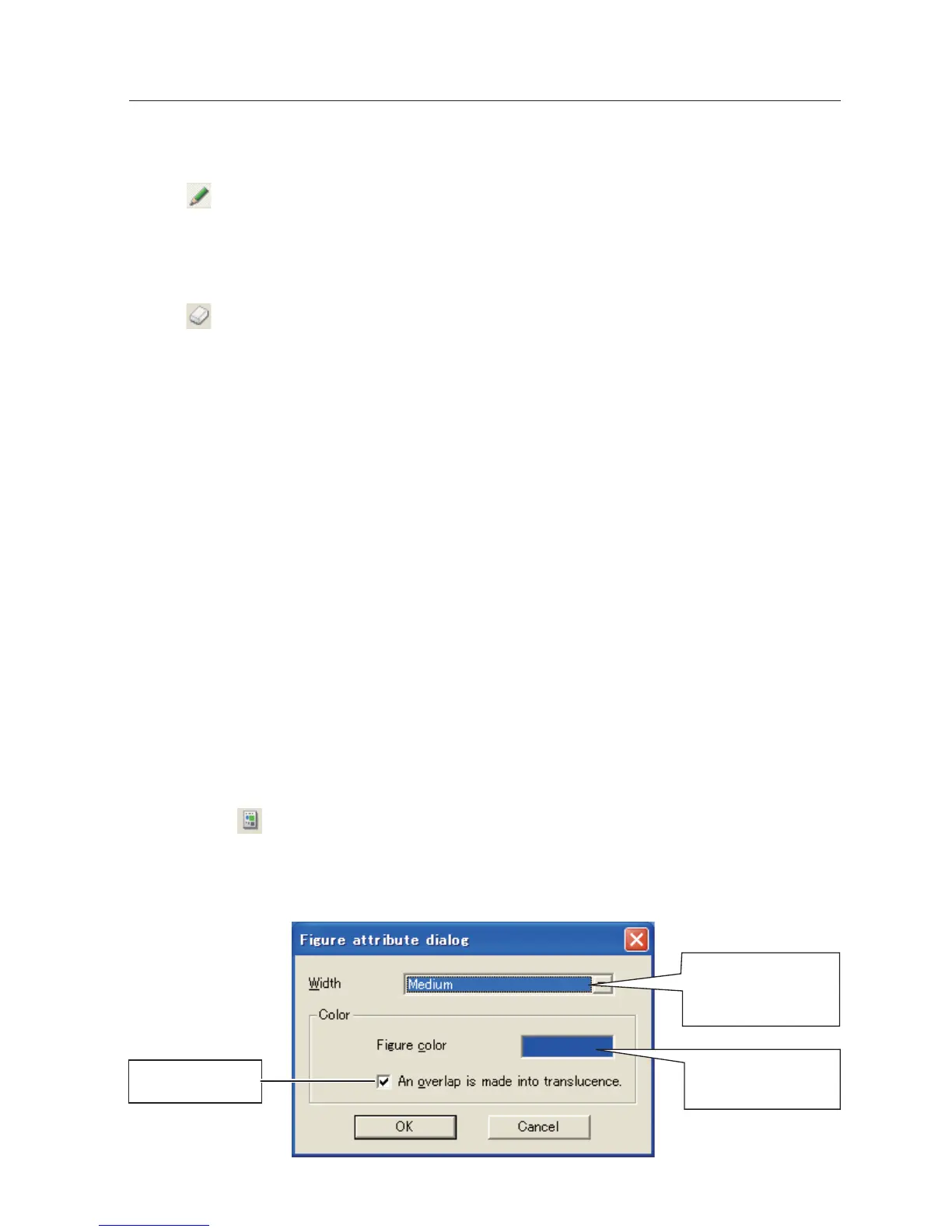 2 Select its attribute (shape, width, color and translucence) from the form and attribute tool bar.