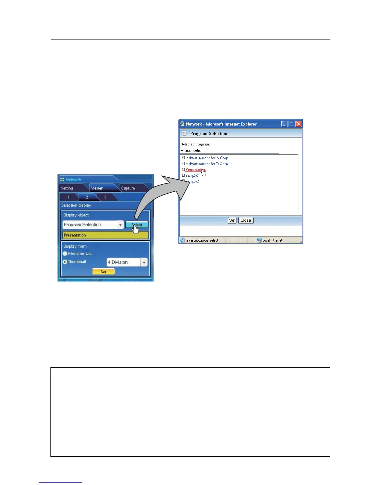Use the web browser to access to the control page of the projector. Click "Viewer" of the Network