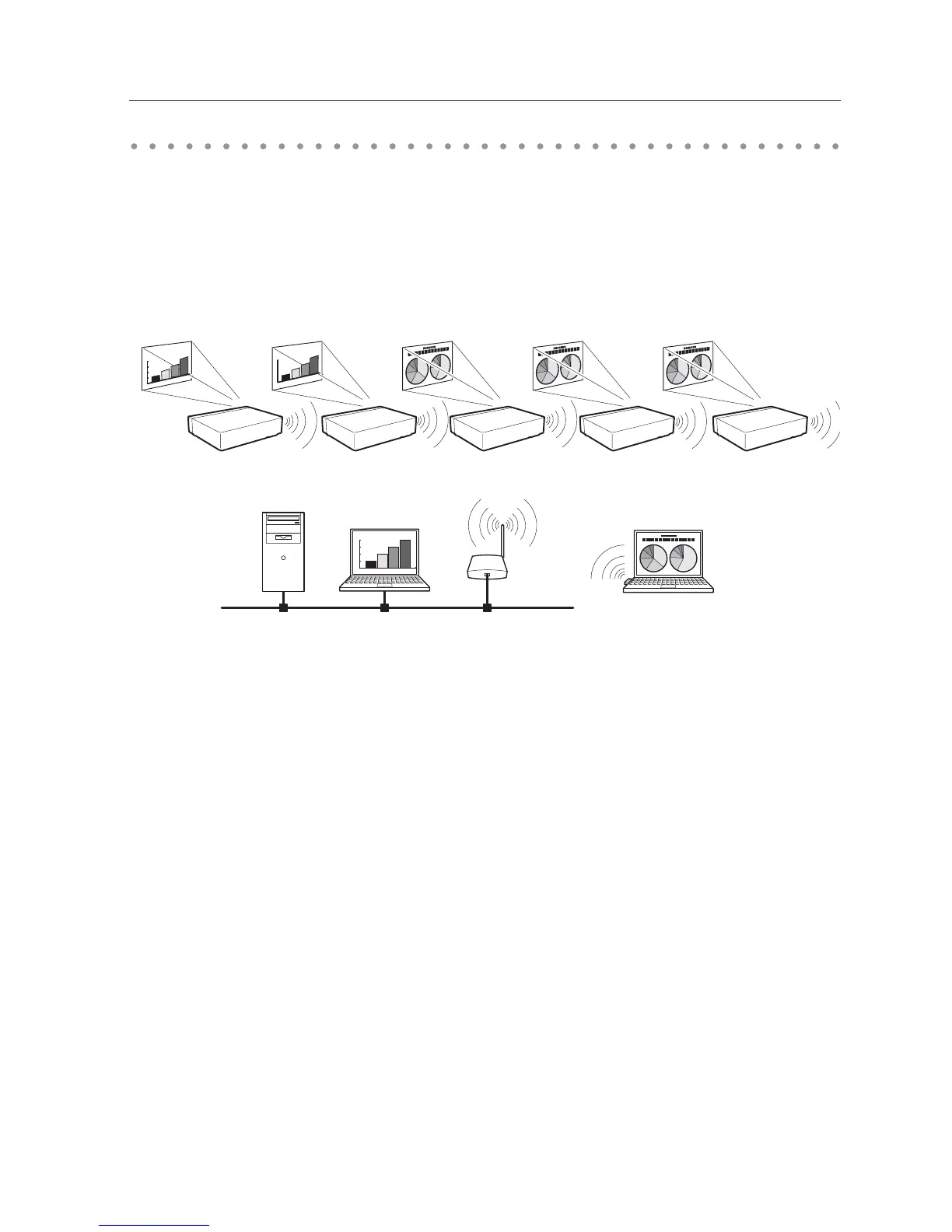 You can project the image on Computer (1) (Wired LAN connection), or Computer (2) (Wireless LAN