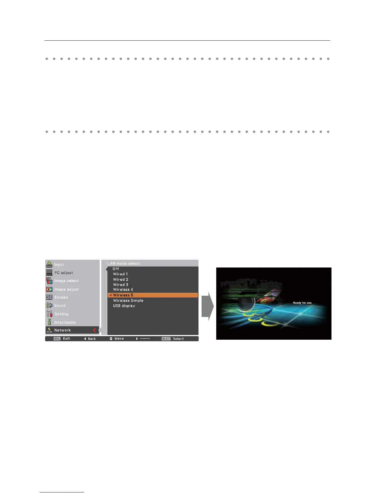 2. Select “LAN mode select” in the Network menu, and press Point or SELECT button.
