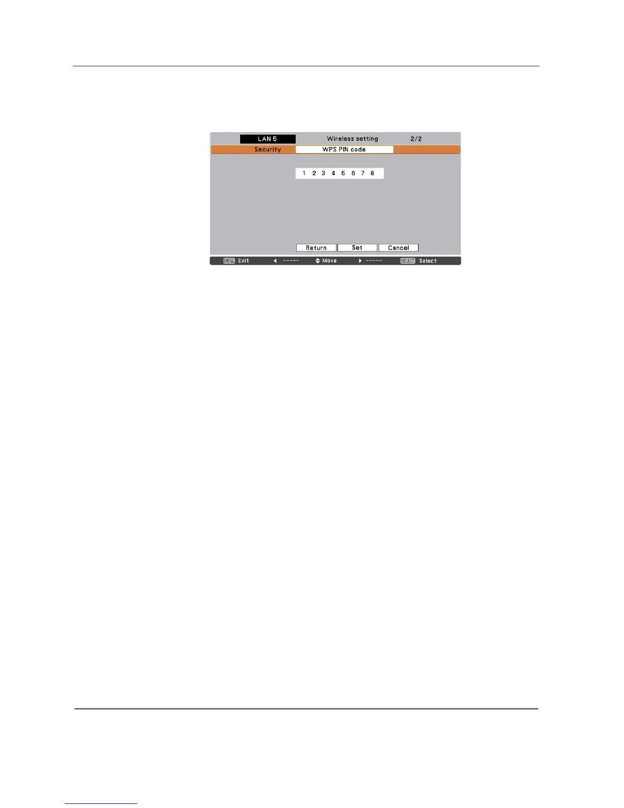 select "Set" and "WPS PIN code" will appear by pressing SELECT button.