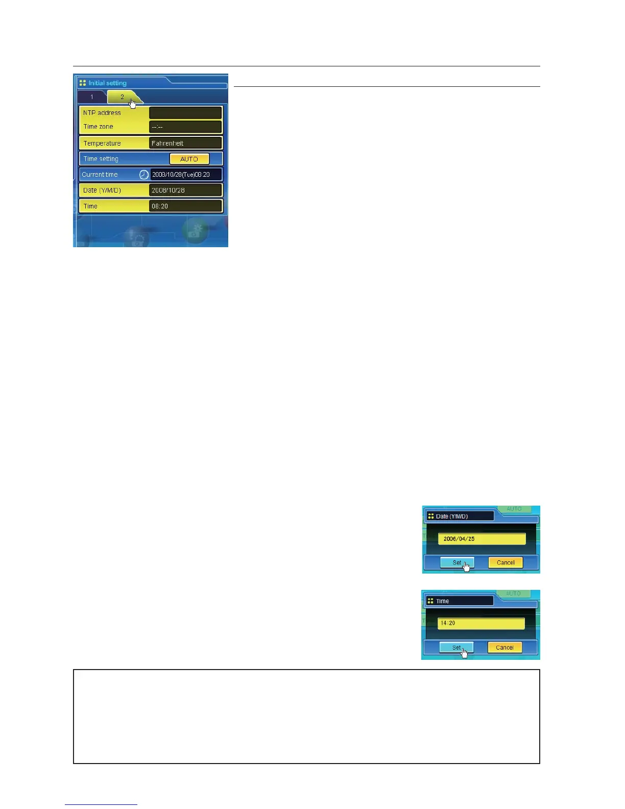 When the NTP address is not set, perform the time setting with "Auto-setting" or "manual setting"