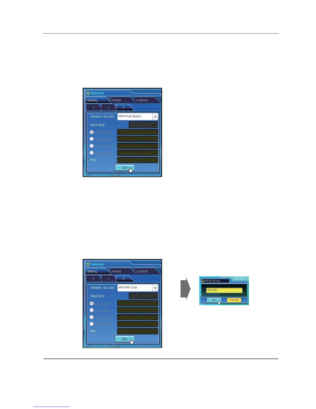 1. Select “WPS PIN code” in the “Network security” and press Set button.