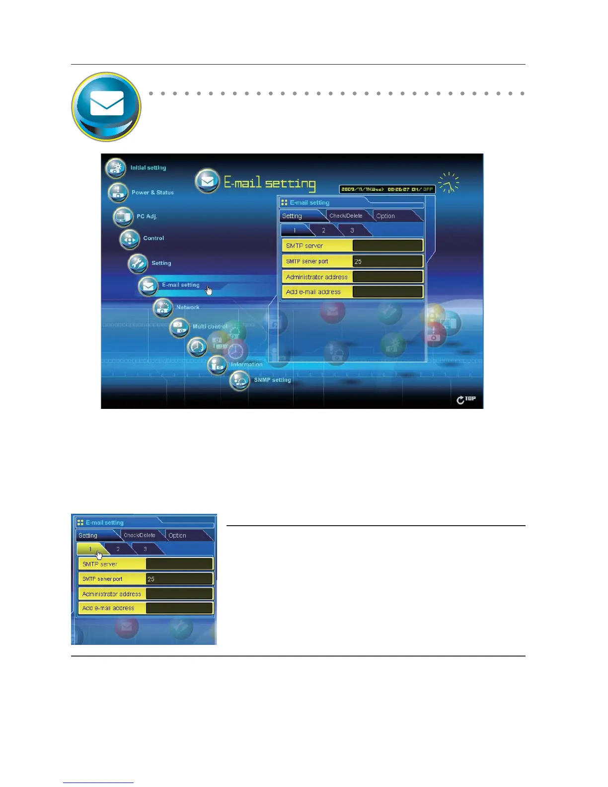 of the lamp. Click E-mail Setting on the main menu and follow the below steps.