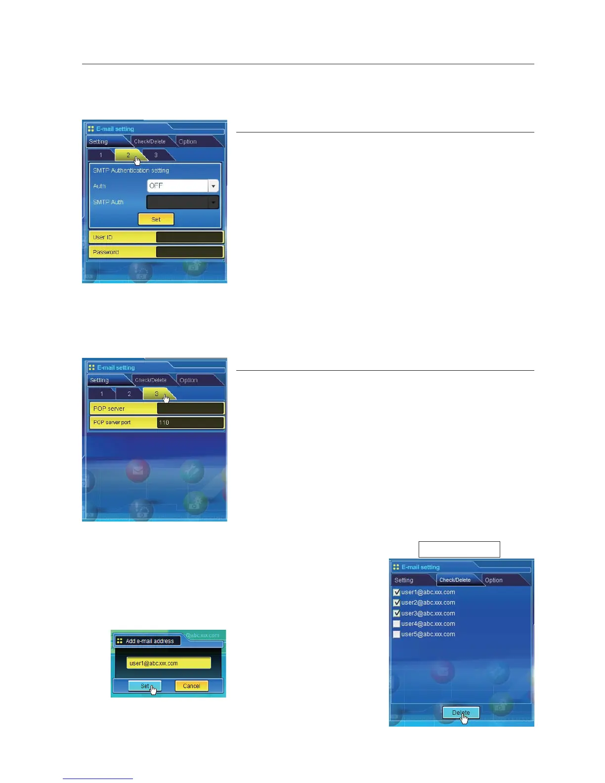When using POP server to receive E-mail, set the POP server concerned. Please contact your network