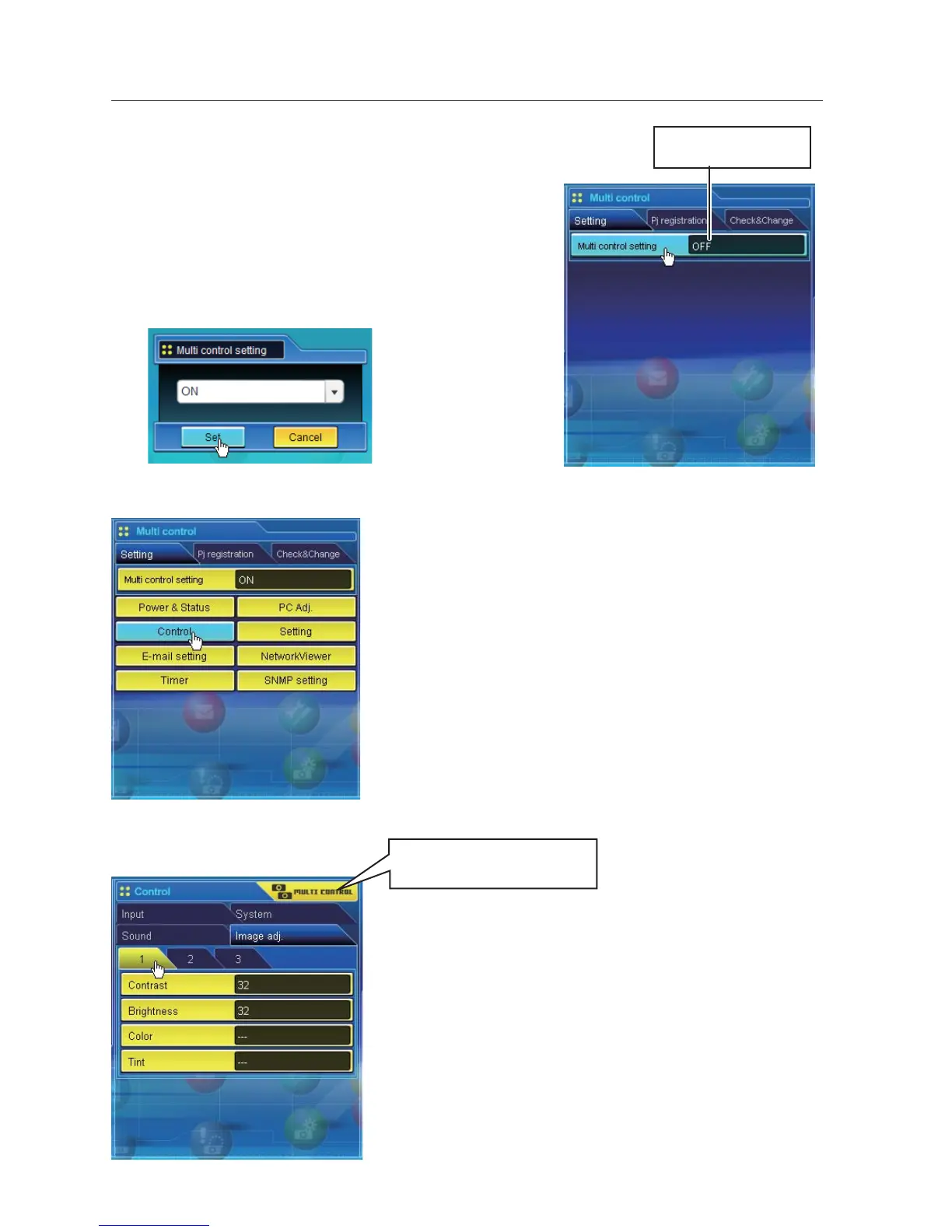 adjustment", "Control", "Setting", "E-mail setting", "Timer", and