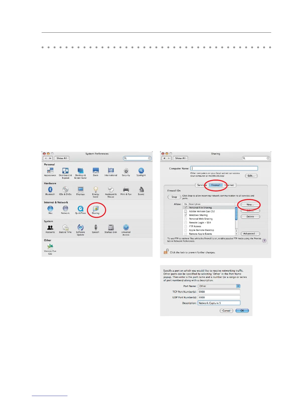 When you use Macintosh OS X v 10.4 and Network Capture 5, you can cancel the firewall blocking