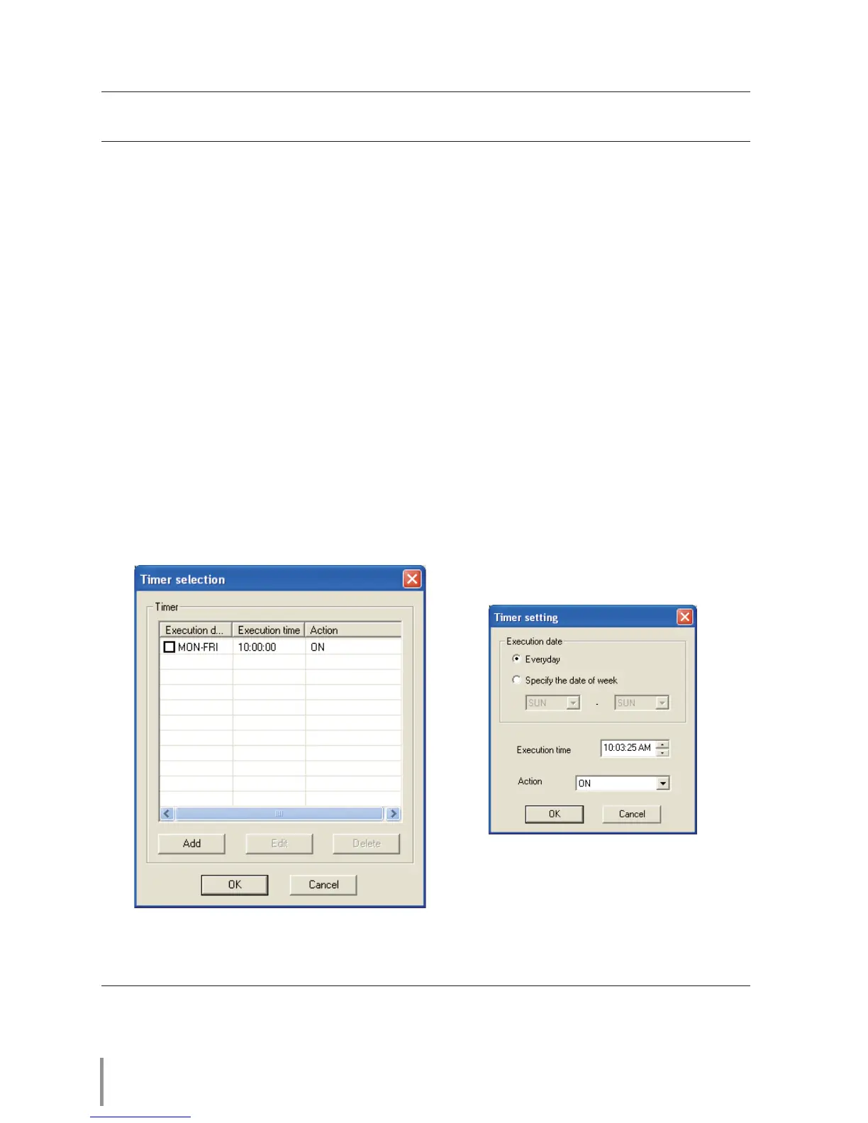 3 When you want to add events, click Add button. Input timer informations in Timer set-