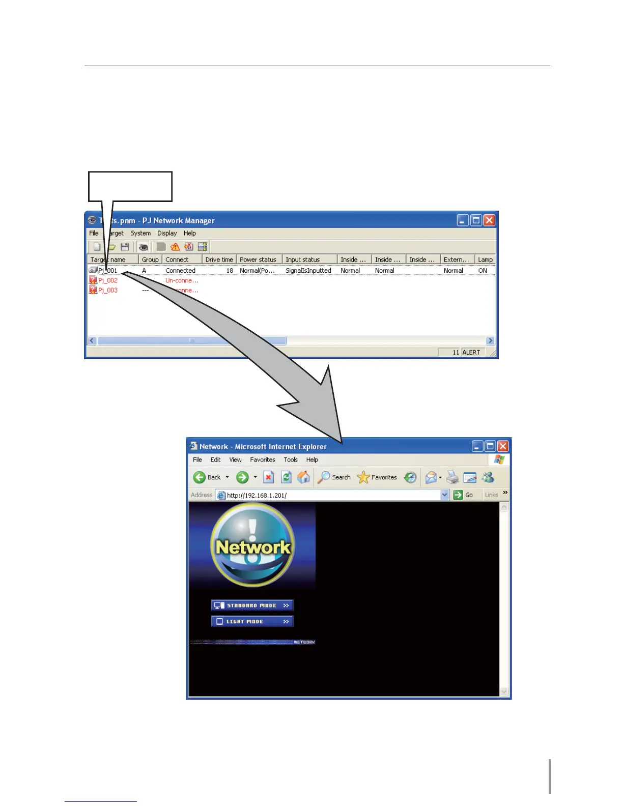 You can control and set up the projector remotely by using the web browser. For the fur-