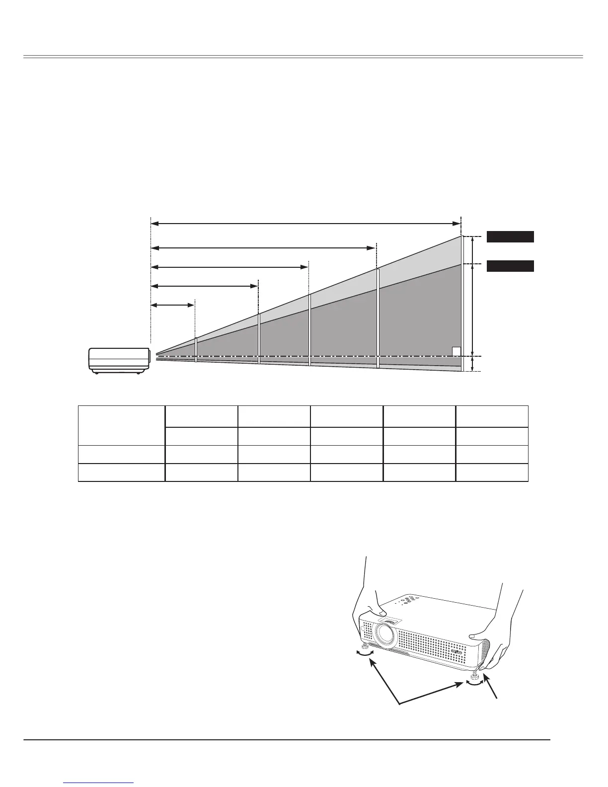 For projector positioning, see the figures below. The projector should be set horizontally to the flat